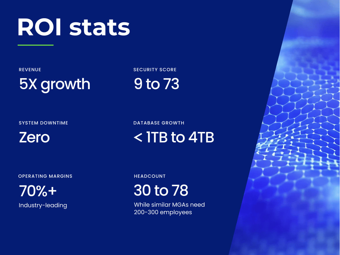And that relationship has led to further innovations and further results. To solve failing legacy automations, Tenger built the "Arden Tech Engine", which automates quote-bind emails, jumping accuracy from 90% to 99%. More critically, underwriting time plummeted from 1 hour 45 minutes to just 20 minutes per file. Most underwriting firms doing Arden's volume have 300 to 500 employees; Arden has 70.