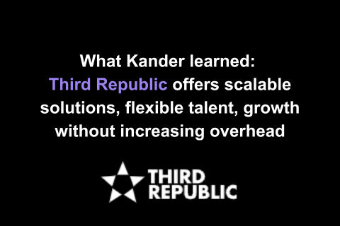 That solution was Third Republic’s TalentConnect program. Kander didn’t just need a staffing agency; they needed a strategic partner capable of helping them scale without increasing workforce overhead. TalentConnect provided access to a global talent network—fully vetted, experienced professionals ready to jump into complex projects. By leveraging this extensive talent pool at fixed, industry-leading rates, and offering discounted conversion paths to full-time roles, Third Republic empowered Kander to manage projects flexibly and efficiently.